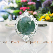 Charming Round Moss Agate Engagement Ring Adorned with Moissanite Halo