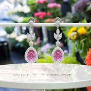 Blush Bloom: Pear Pink Sapphire Drop Earrings with Moissanite Halo