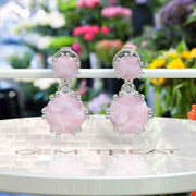 Pink Harmony: Smooth Round Rose Quartz Drop Earrings