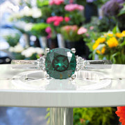 Mesmeric Blue: Oval Turquoise Ring with Brilliant Moissanite Companions.